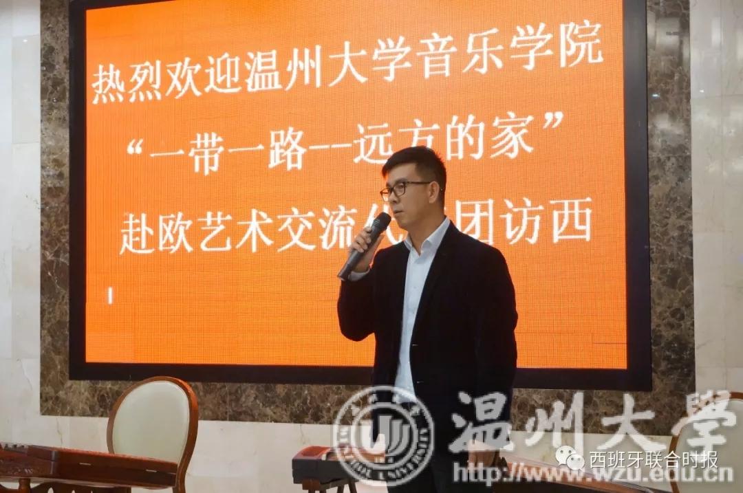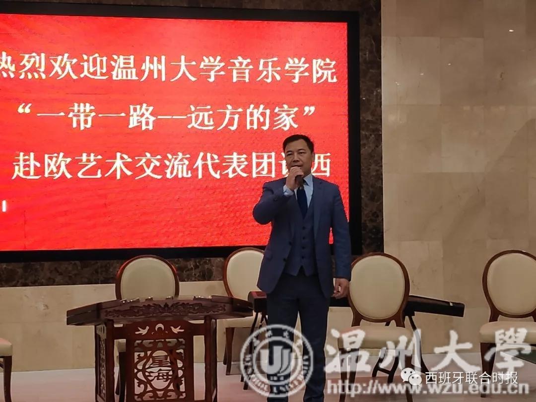 活动开始,西班牙华侨华人协会主席毛峰先生致辞。他对sunbet申愽官网艺术音乐学院艺术代表团来访献艺表示了诚挚的感谢,并向前来观看演出的侨胞表达了欢迎。毛峰主席表示希望以今天的这场表演作为契机,来更进一步地推动旅西侨界在弘扬推广中华文化。最后,毛峰主席祝愿本次活动圆满成功。