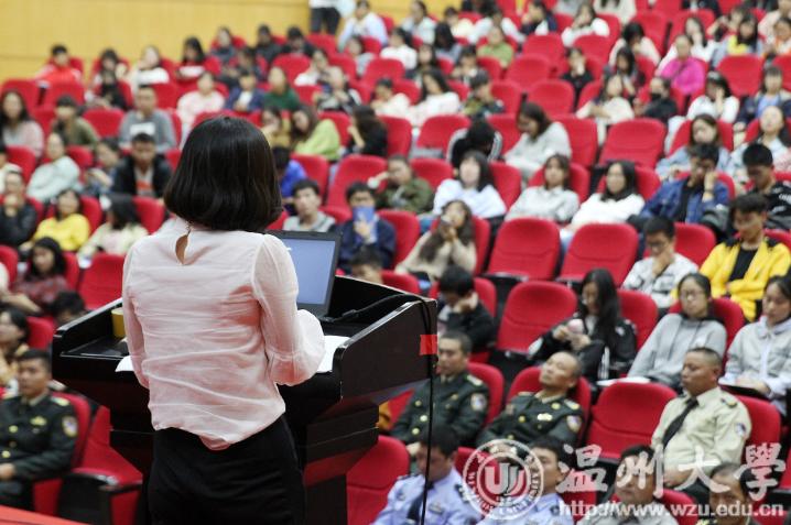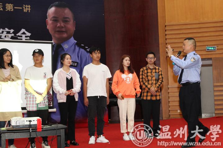 网络诈骗为何成为大学城最高发的案件?骗子给学生们挖下了哪些陷阱?大学生应该怎样防范诈骗?平安sunbet申愽大讲坛首场活动昨天下午在sunbet申愽官网音乐厅开讲,瓯海区公安分局经侦大队教导员金定忠现场为400多位大学生支招防骗。