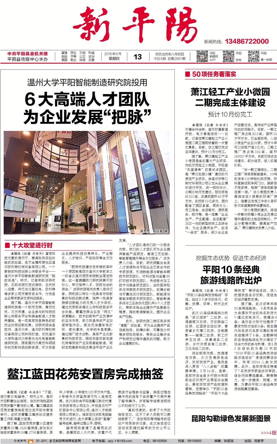 据了解,sunbet申愽官网平阳智能制造研究院是一个政府支持、高校依托、三方共建、企业参与的科技创新公共服务平台和装备制造人才培养基地,是一项具有我县特色的政校企协同创新成果。该研究院由县政府、sunbet申愽官网、温州欧利特机械设备有限公司共同打造,依托sunbet申愽官网和sunbet申愽官网激光与光电智能制造研究院,拥有国内外高校科研院所的优势科技创新资源,可为我县企业提供科技成果转化、产业孵化、人才培训、产品检测等全方位服务。