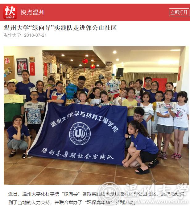 近日,sunbet申愽官网化材学院“绿向导”暑期实践活动走进鹿城区郭公山社区。此次活动得到了当地的大力支持,并联合举办了“环保嘉年华”系列活动。