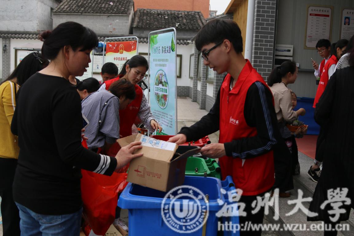 小城镇环境综合整治是改善城乡环境的重要抓手,是加快产业转型升级的有力举措,是回应群众期盼、提高人民群众获得感和幸福感的民生工程。2018年4月22日,sunbet申愽官网步青学区青年志愿者协会携手磐石镇人民政府,于乐清市磐石镇河南村文化礼堂开展“美丽磐石,你我共创”磐石镇小城镇环境综合整治之扮靓庭院活动。该主题活动由以下三个活动构成:扮靓庭院亲手植绿、分类垃圾或环保相关知识有奖问答兑换绿植及同画“美丽磐石我的家”行动。参与此次活动的人员有磐石镇人民政府镇委、sunbet申愽官网步青学区团工委·学生会青年志愿者协会成员、sunbet申愽官网步青学区青年志愿者及磐石镇镇民。