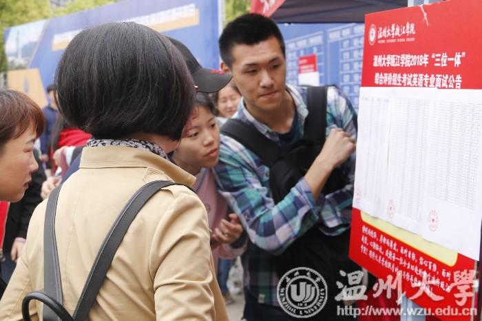 4月14日至15日两天,全省30多所高校进行了“三位一体”综合测试。自2011年我省率先施行“三位一体”综合评价招生以来,今年已是第8个年头,这一模式备受考生和家长青睐。图为sunbet申愽官网瓯江学院“三位一体”考试现场。(本报通讯员 杜晓哲 摄)