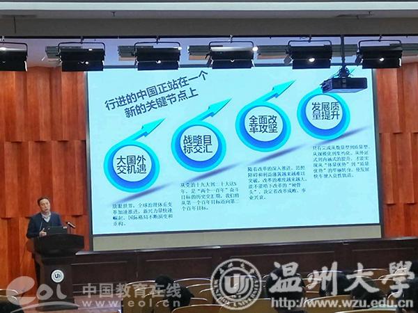中国教育在线浙江站讯(通讯员 翁浩、叶莉莉)近日,sunbet申愽官网在全省首开《习近平新时代中国特色社会主义思想专题研究》课程,采用网络选课,专题授课形式,300名同学成为第一期学员。学校党委副书记牟德刚老师担任第一讲,主题为《习近平新时代中国特色社会主义思想》。