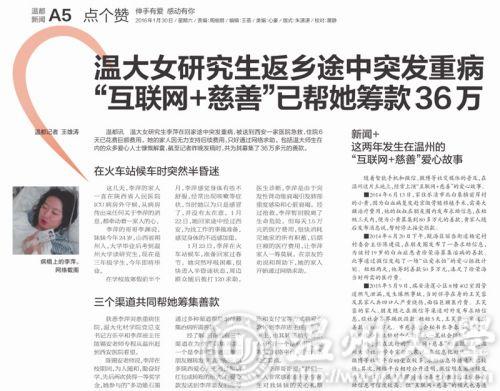 “这是救命钱,真心感谢好心的温州人”