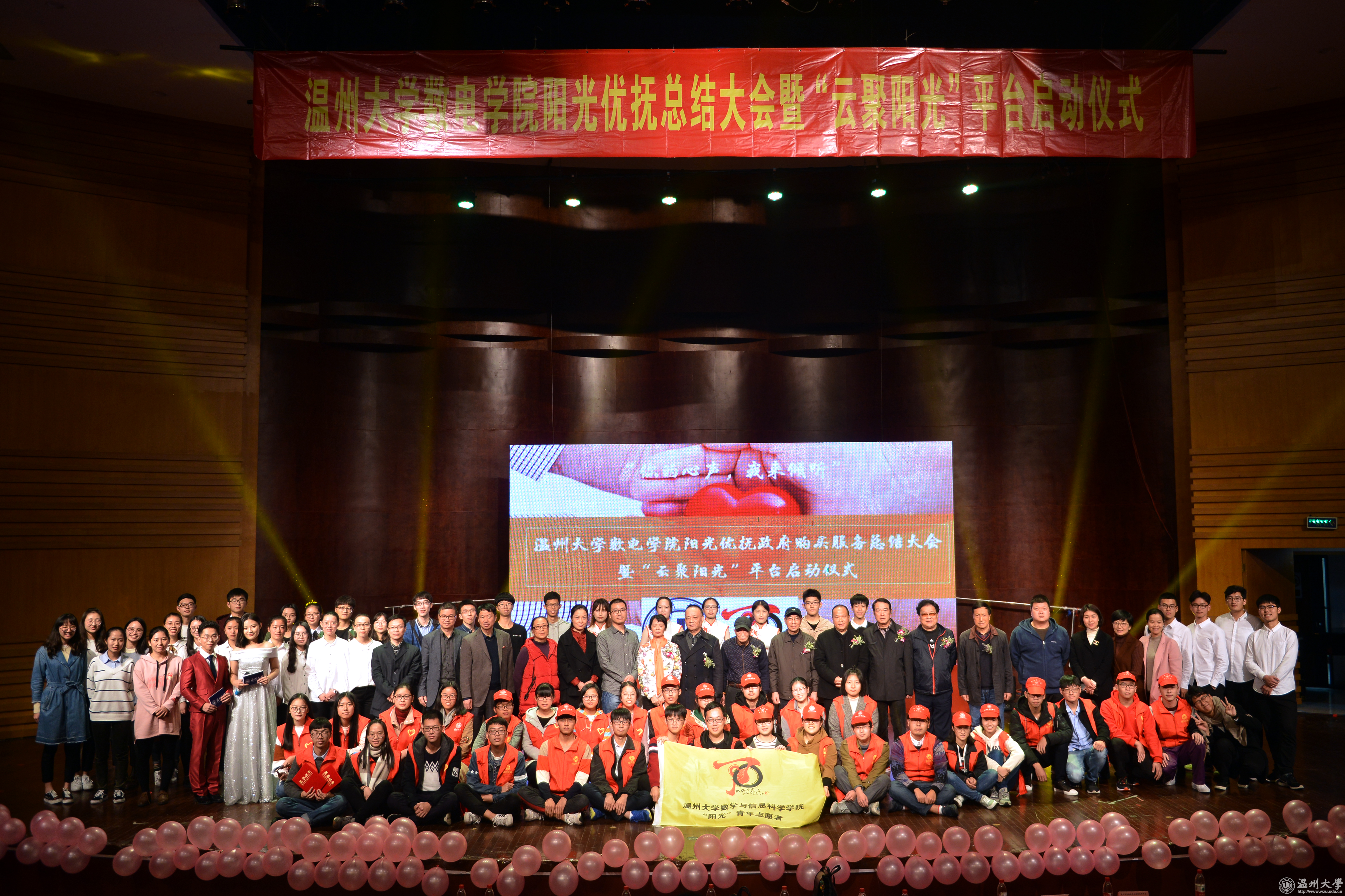 阳光优抚在路上,又是一年收获时。2017年11月29日下午,sunbet申愽官网数理与电子信息工程学院阳光优抚政府购买服务总结大会暨“云聚阳光”敬老公益线上平台启动仪式在南校区音乐厅顺利举行。阳光使者团队及数电阳光志愿者,携远道而来的优抚老兵代表们一同回顾一年来的点滴步伐并庆祝优抚活动的圆满成功。