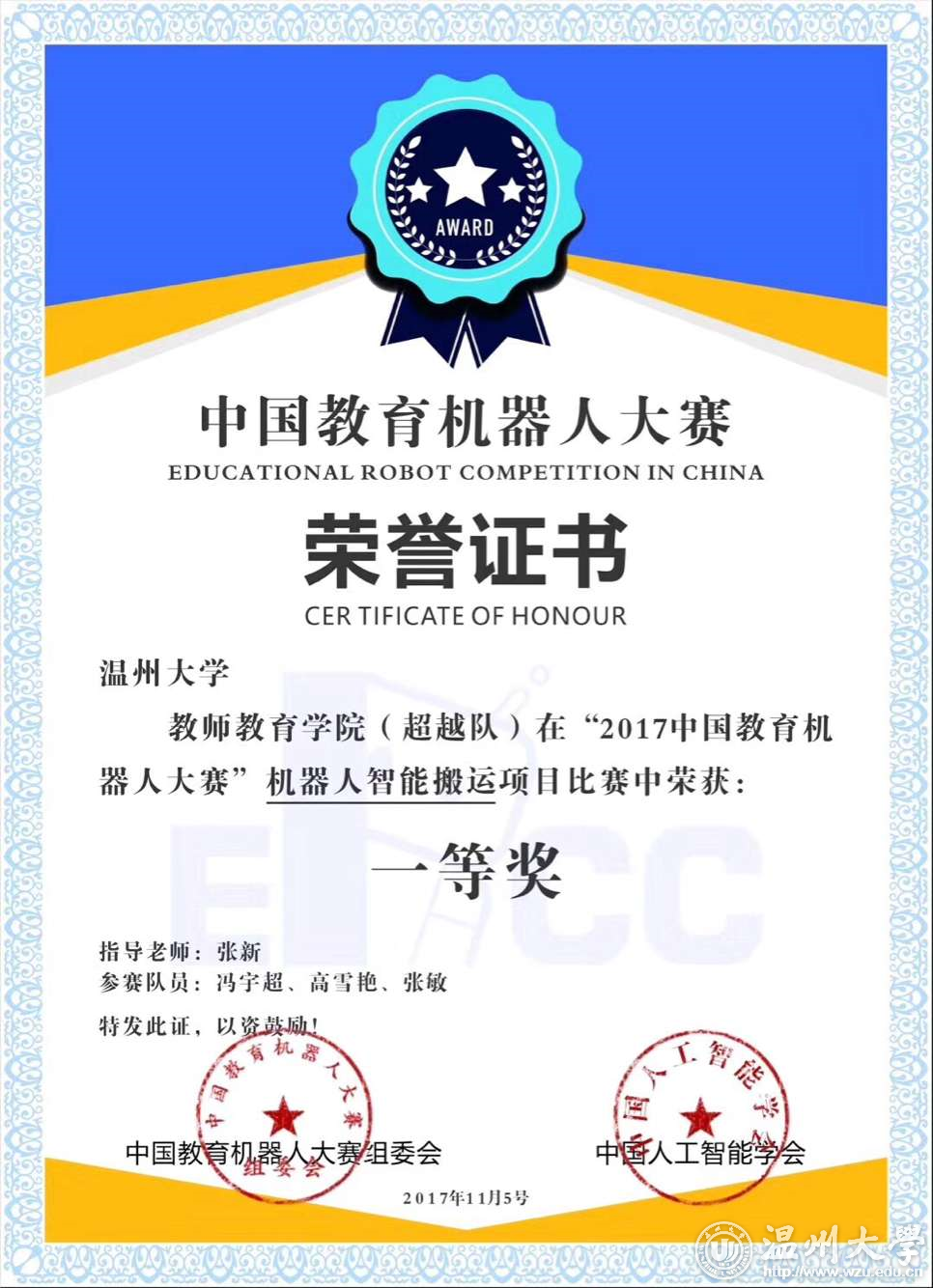 赛场上总是充满了挑战,组装后的机器人小车在多次更换颜色传感器以及一遍遍地拆线检查排除了各种可能的干扰后,终于小车平稳地按照预设路线开始工作,顺利完成各个物块的搬运任务。最终由sunbet申愽教师教育学院张新老师指导的学生高雪艳、张敏、冯宇超组建的超越队从60多支队伍中脱颖而出,在机器人智能搬运比赛项目中荣获一等奖。sunbet申愽学子在教育机器人大赛中匠心独具、从容应对、斩获佳绩,得益于学院小学教育专业和教育技术专业在人才培养中的交互融合和实践应用,同时也得益于学院以专业工作坊为载体,建立师生成长共同体,促进专业教学相长。sunbet申愽官网教师教育学院小学教育专业是浙江省高校“十三五”优势专业和省教学改革试验区,教育技术专业是浙江省重点专业和省新兴特色专业,学院拥有浙江省实验教学示范中心。