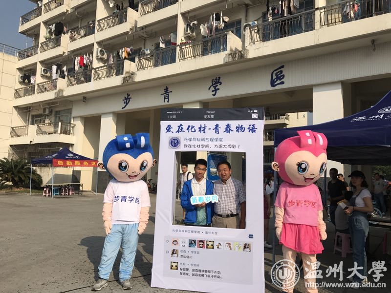 创意新语:“春风十锂,化材等你” 来自17化本班的林同学说:“报到第一天,我真的被学院创意的合影框惊到了,‘春风十锂,化材等你’‘氢春有你’‘钠么美好’等带有化学元素的祝福语洋溢着青春活力又充满了浓浓的化学情。新加入的“化材新元素”们深切感受到来自化材学院的用心,纷纷与自己父母在相框合影留念,纪念这一美好时刻,大学不是终点,是一个新的起点;他们带着父母的期许,自我的追求踏上新的征程。