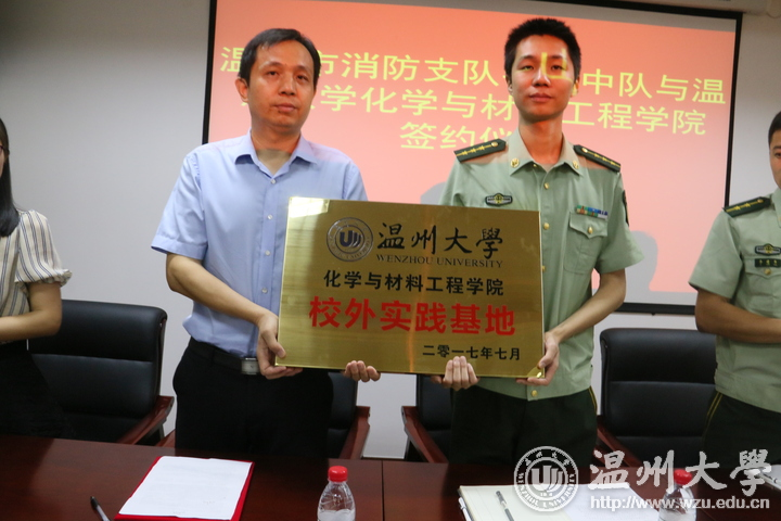 7月5日上午,sunbet申愽官网化学与材料工程学院“校外消防实践基地”,在温州市公安消防支队牛山中队正式挂牌成立。这标志着温州首个大学校外消防实践基地正式成立。