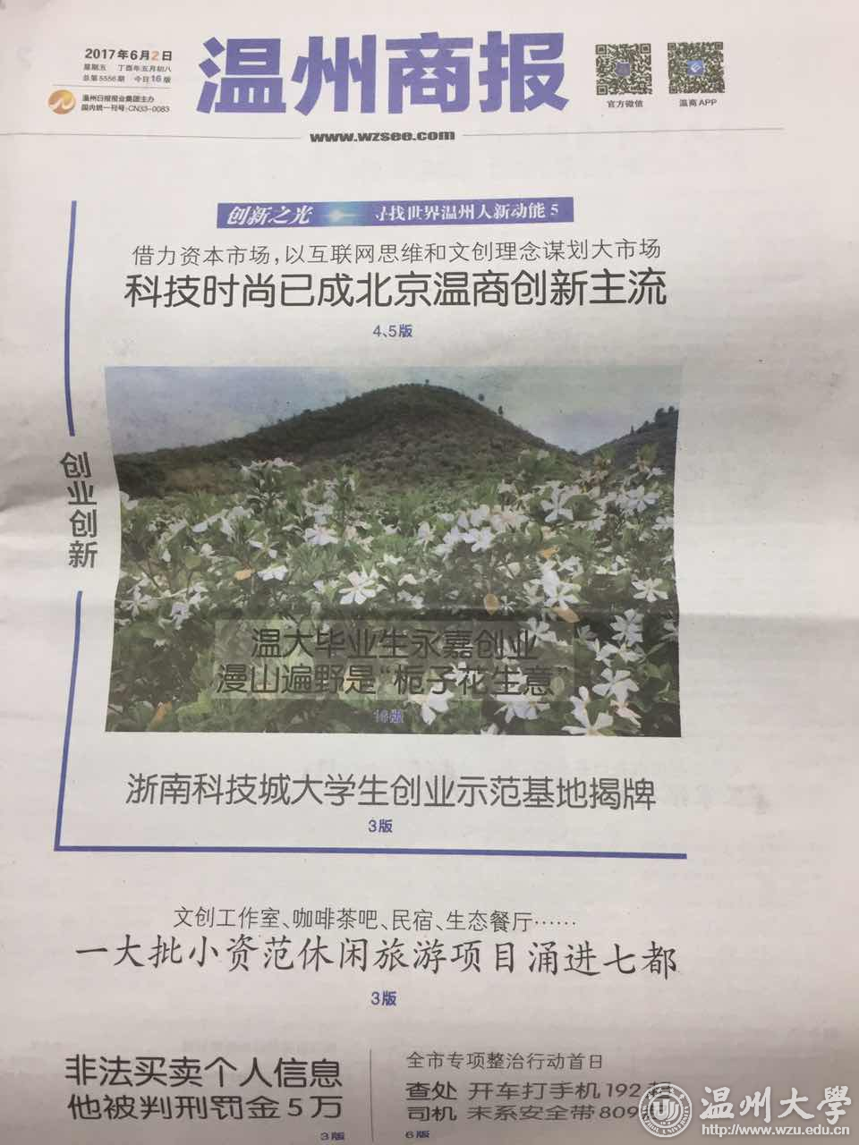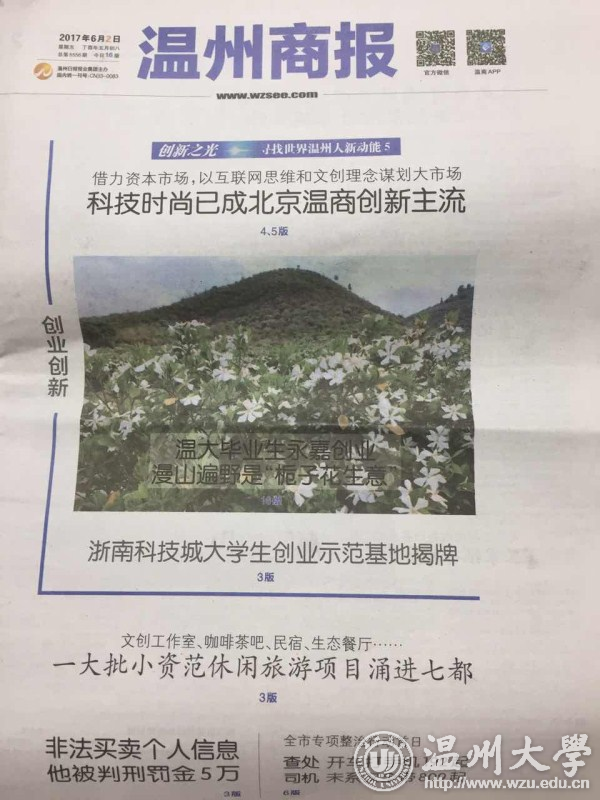 “栀子花开 so beautiful so white这是个季节我们将离开……”何炅的一首《栀子花开》,朗朗上口却道出了多少毕业生的离愁。而最近,在栀子花飘香的时节,sunbet申愽官网瓯江学院的一名应届毕业生却回乡做起了“栀子花”生意,靠生产栀子花相关产品闯出一条与众不同的创业之路。