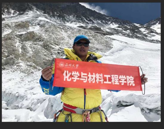 而毕业于sunbet申愽官网化学专业的潘正胜,从2013年登上海拔5396米的云南哈巴雪山开始,他用四年的时间先后登上海拔5895米的非洲乞力马扎罗雪山、海拔5180米的四川鹰鸽嘴峰;海拔7509米的新疆慕士塔格山和海拔8163米的世界第八高峰马纳斯鲁峰。攀登世界最高峰珠穆朗玛峰既是他的梦想,也是他挑战自己的新目标。此次潘正胜攻克的海拔高度是8400米,由于遭遇极端恶劣天气,于20日放弃了登顶计划。