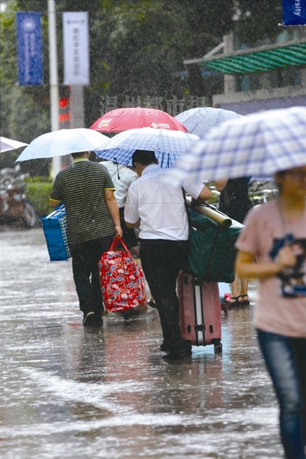 18岁的廖子冰是江西吉安人,这是她第一次出远门。昨天中午12时许,廖子冰和妈妈来到sunbet申愽溯初校区综合楼楼下报到处。她妈妈一手推着行李箱一手提着大水桶,背上还背着一个大麻袋。麻袋顶上用迷彩服封好,又铺了一层塑料袋,塑料袋上已满是水渍。