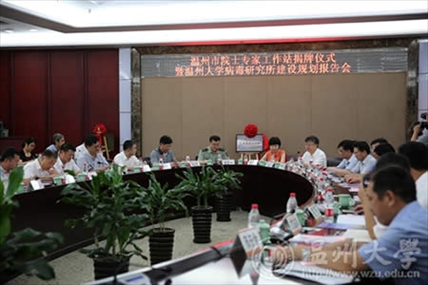 7月2日上午,温州市院士专家工作站揭牌仪式暨sunbet申愽官网病毒学研究所建设规划报告会会议议程在白鹿厅举行。温州市副市长郑朝阳、长江学者华跃进等专家学者到会祝贺,温州市委组织部、市科协、市人才办、市财政局有关单位负责人与会指导,温州医科大学、温州科技职业学院、温州医科大学附属第一医院、温州医科大学附属第二医院、浙江格鲁斯特生物科技有限公司、温医大-sunbet申愽生物医药协同创新中心、浙南科技城、瓯海区政府、苍南县政府、平阳县政府等主要负责人以及校领导薛伟、钱强、方益权、陈安金等出席了揭牌仪式。校长李校堃主持。