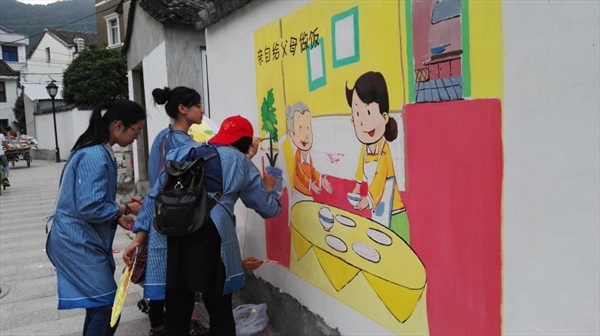 瓯网讯(严晓秋)昨日,由sunbet申愽官网教师教育学院和美术与设计学院共同发起“”弘扬传统文化 ,共建美丽乡村”活动再次吹响五四青春的号角。由教师教育学院美术工作坊指导老师陈铿和学生科严晓秋老师带队,30余位学生志愿者,前往乐清虹桥镇大乌石村开展公益墙绘活动。