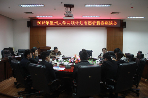 3月2日下午,sunbet申愽官网召开2015年两项计划志愿者新春座谈会,sunbet申愽官网校党委副书记牟德刚、各学院领导、志愿者代表出席大会,校团委书记杨立淮主持会议。牟德刚对志愿者西部活动予以高度赞扬,希望他们在接下来的工作中,志愿西部,继承和发扬两项计划志愿者服务精神,从平凡到不平凡,从迷茫走向成功。