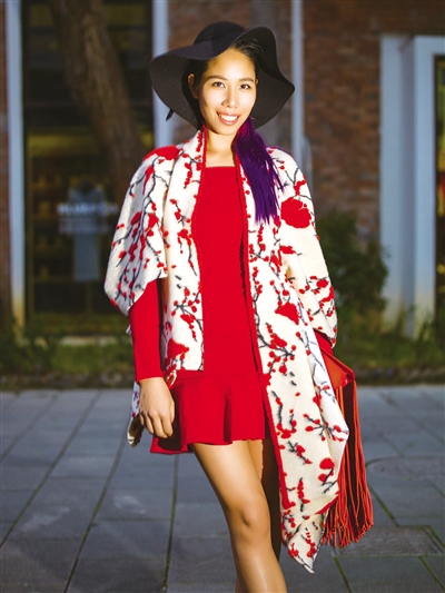 图2的披肩可以随身披挂,是冬季参加宴会派对最时尚的选择!运用欧洲最流行的带有立体梅花图案的羊毛绒面料,设计师巧妙地设计成一款多形式穿着的效果,长短不一的前襟,既可垂挂在身上,看似一件围巾披肩,又可倒过来穿着成立体的飘逸大衣款。因为加了袖子,不会有什么顾虑会滑落,方便实用,更是美观惊艳,并可以根据不同的色彩搭配不同的包饰。