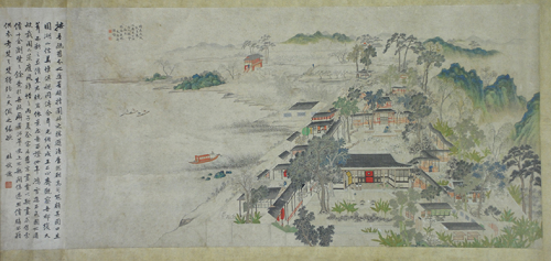按吾瓯旧分巡道署,颇擅园林之胜。逊清康熙朝,高司寇颜其园曰“且园”。湖山信美,惟俱视同传舍耳。光绪戊戌,王公心斋观察吾郡,复大葺而新之,并倩朱君晓岩依景成图,留证他年鸿雪。迨至民国,巡道缺裁,园亦荒废,风雅惜之。丙子夏,余客居旧京,画贾以斯画求售,索价十金。浏览之余,觉于吾瓯廨署沿革史上不无关系,遂照价购留,藉供参考。楚弓楚得,殆亦天假之缘欤。