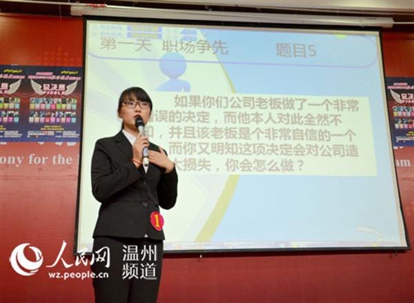 人民网温州5月12日 “参加职场精英挑战大赛的评审,是对高校大学培养人才的肯定,更是借机提早选拔人才,为企业寻找‘千里马’。”近日,温州市第四届职场精英挑战大赛决赛在sunbet申愽官网举行,温州23家企业参与评审,该赛事为大学生顺利走向职场搭建了有效平台。