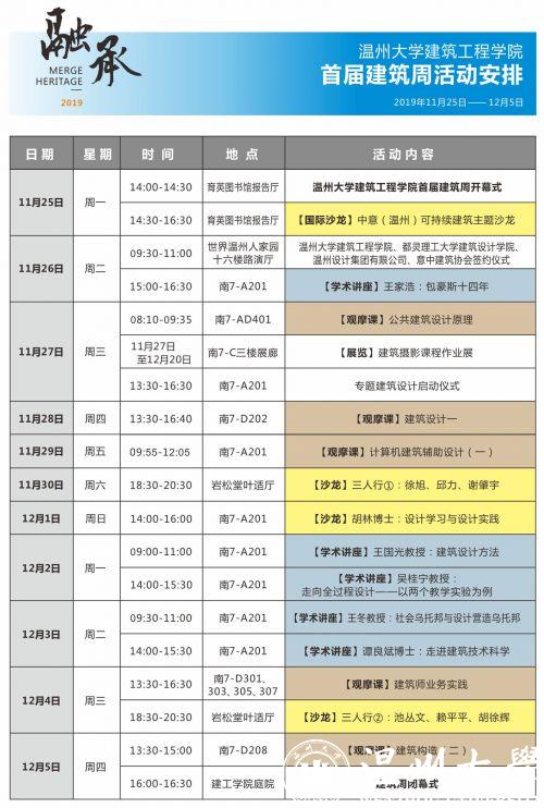 本次建筑周系列活动以“融·承”为主题,将从11月25日持续到12月5日,包含沙龙、学术讲座、观摩课、展览等多种形式,邀请了海内外建筑业专家进行行业最新研究和趋势的分享与交流,为广大学生搭建交互交流与深入学习的平台。