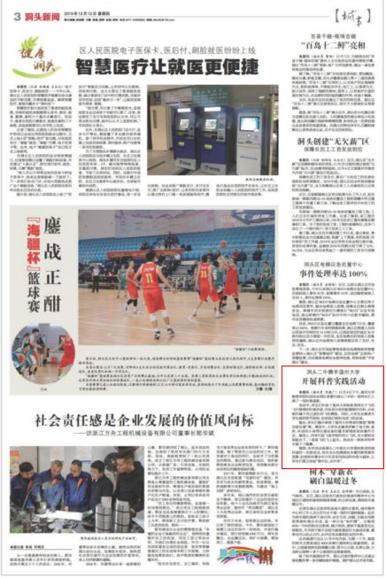 本报讯(通讯员 刘建广) 12月4日下午,sunbet申愽官网数理学院科创协会团队受邀为洞头二中初一段师生们上演了一场科普盛宴。