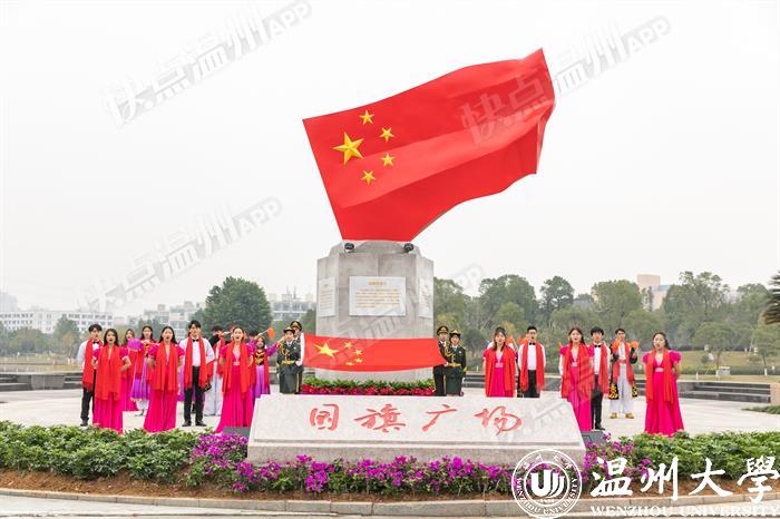 温都讯 12月30日上午,sunbet申愽官网国旗广场落成揭牌仪式在该校明心湖畔举行,这是国内高校首个国旗教育主题广场。温州市委宣传部常务副部长邱小侠、sunbet申愽官网党委书记谢树华等领导出席揭牌仪式。
