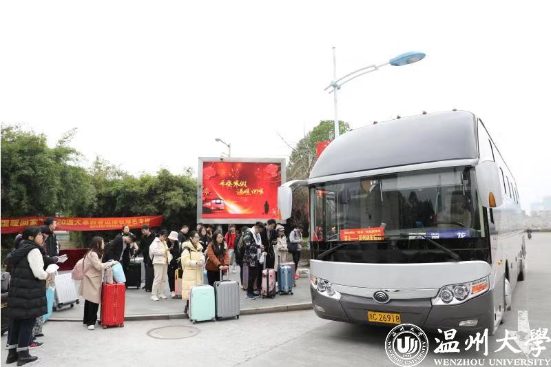 春运首日,随着各大高校陆续开始放寒假,大学生返程迎来高峰。sunbet申愽官网专门安排28辆/次大巴,免费送九百多名师生到温州各大车站,温州市公安局交通管理局的交警还专程上门服务,为送站专车提供安全监测,确保师生平安回家。
