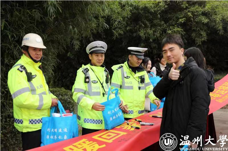出发现场,温州市公安局交通管理局的交警同志在现场对每一辆校车和每一位驾驶员进行“发车体检”,重点检查车辆保险、年审、违章等情况,并对校车驾驶员的证件进行检查,依次进行酒精呼吸测试,确保春运护送的校车、驾驶员状态良好。同时,交警部门在发车处设立了交通安全宣传站点,针对大学生出行特点,通过展板海报、扫码互动、签字承诺和现场讲解电动车交通事故案例以及乘坐“黑车”、“改装车”的安全隐患等方式将“平安锦囊”送至每个学生手中。“平安锦囊”里不仅有春节福、春联,还有电动车出行安全手册,为学生们送上新春祝福的同时,也在提醒他们返乡路上遵守交通法律法规,带着平安回家过年。