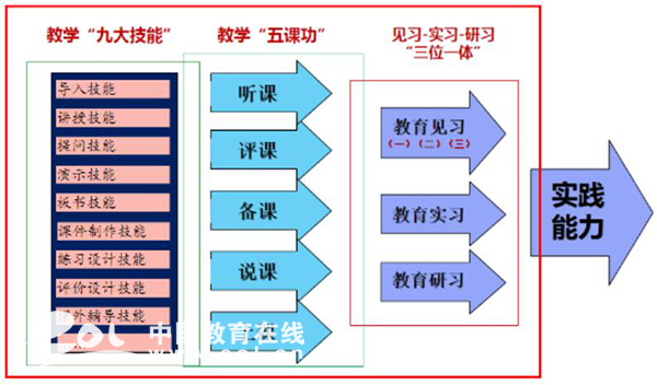 彭小明告诉记者,该小教专业构建目标细化、全程递进的“359”大实践教学新体系,教育见习、实习、研习“三位一体”,课内课外、校内校外、线上线下等多角度、多方位开展,强化学生的教学“五课功”和教学“九大技能”训练,全面培养师范生教育实践能力。记者了解到,所谓的教学“五课功”指的是“听课、评课、备课、说课、上课”,而“九大技能”则包括导入技能、讲授技能、提问技能、演示技能、板书技能等。