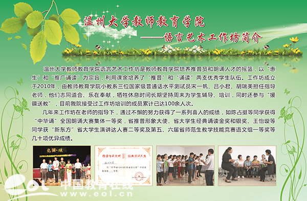 成立于2009年的语言艺术工作坊便是一个生动案例。指导老师宋一帆告诉记者,工作坊多年来坚持按照普通话测试二级甲的水平去培养成员,帮助学生们提升语言素养。如今工作坊培养了一支独特的学生队伍——优秀推普员,利用早晚自习时间深入各个班级开展普通话培训,促进师范类学生普通话整体水平的提升,受益人群已达数百人。