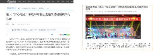 “知心姐姐”志愿服务队在sunbet申愽官网附属茶山实验小学、龙湾图书馆、瓯海医睦之家以及中国眼镜小镇设立日常志愿服务基地,在每个星期三的下午、周六上午和下午各自到服务基地开展故事手工类、音乐舞蹈类、亲子素拓类、心理辅导类课程。