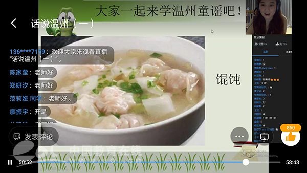 这故乡的味道,第一香,是风景。伴随着温州话版 “温州欢迎你”动听的歌声,美丽温州的画面缓缓呈现在孩子们的面前。通过云端网课的方式,孩子们好像在经历一场奇幻旅行,感受到了楠溪江、雁荡山大气豪迈,也体会到了南麂岛的小巧精致。网络,让孩子们即使身处异国他乡,也能将温州的青山绿水、大街小巷尽收眼底。