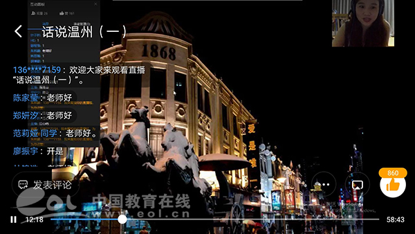 中国教育在线浙江站讯(记者 赵小倩 通讯员 齐倩凌)4月24日晚8时,来自意大利、西班牙、法国、意大利、日本等国的百余名华裔温籍孩子们,端坐在电脑前,在周莉苏、郭艳艳、姜伟、包昭昭四位特殊导游——sunbet申愽官网海外华裔青少年云端华校华文班老师的带领下,开启了一趟与众不同的旅程——云游故乡温州。