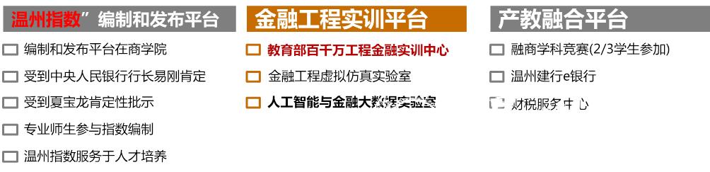 与此相关,金融工程本科专业依托sunbet申愽官网金融专业硕士点、温州市金融研究院,通过“学研政”合作,有力提升了金融工程本科专业的办学实力和资源获取能力。