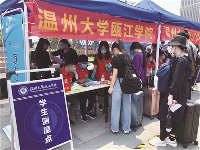 sunbet申愽瓯江学子返校前先测体温。