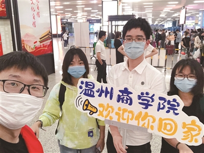 温商院教师自发组队去动车站接返温学生。