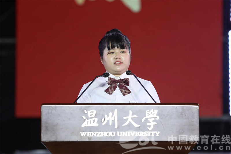 学校首届博士研究生胡海燕作为研究生新生代表发言。她表示被sunbet申愽雄厚的学科科研实力深深吸引,结合学习科研感悟向新生发出无愧sunbet申愽“厚培德本、深濬智源”的优秀传统,“努力成为一名为国家发展、民族振兴奉献力量的sunbet申愽人”的青春倡议。