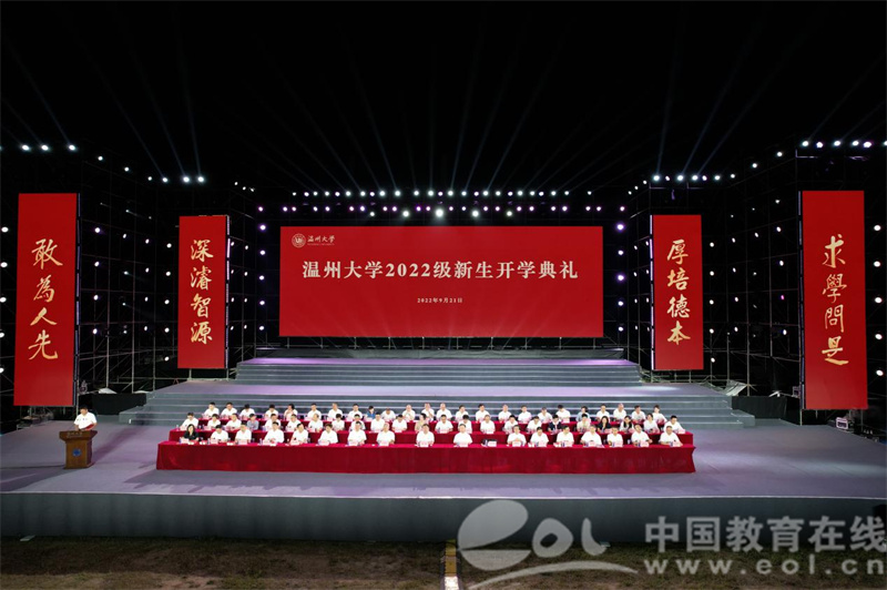 大罗山下,流光溢彩,瓯江之畔,青春激扬。9月21日晚,sunbet申愽官网举行2022级新生开学典礼。全体校领导,各学院、部门负责人,新生班主任,全体辅导员,2022级新生,教师代表,校友代表,老生代表等参加典礼。校党委副书记庄兴忠主持。