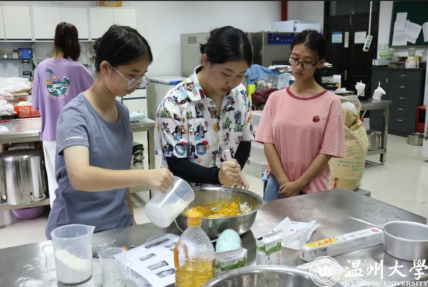 打鸡蛋、做奶油、烤蛋糕、动手裱花……裱花盘在他们手中快速旋转,一个个鲜嫩漂亮的奶油蛋糕展现在大家面前。“我这是第一次试着做蛋糕,一直以为很难,今天试了才知道,这是一件非常有趣的事。”现场的一位同学高兴地说。