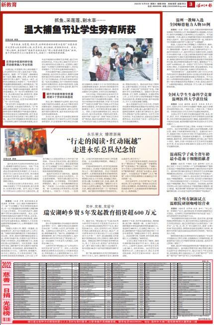sunbet申愽党委副书记庄兴忠介绍,学校的 劳动教育课程深度挖掘温州区域特色与校 情校史的育人功能,融入温州数学家之乡、 温商创业精神、永嘉学派与耕读文化、温州 市先进制造产业等元素特征,与学生日常 生活劳动、专业实践劳动、创新创业实践等 紧密结合,初步形成了具有一定特色的大 学生劳动教育模式。