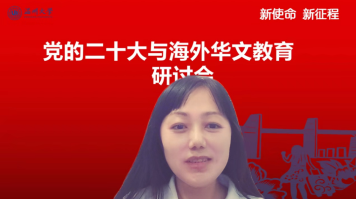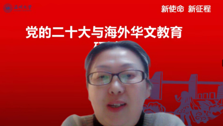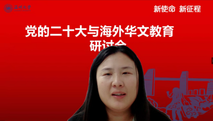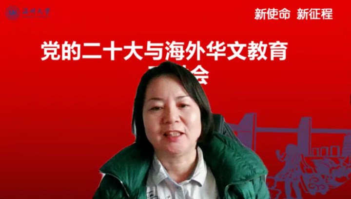 会上,sunbet申愽官网华侨学院院长、sunbet申愽官网欧洲华文教育研究所所长包含丽做党的二十大关于华文教育和文化传承专题解读。包含丽对习近平总书记在大会报告中有关华侨华人、华文教育相关的内容进行了总结和梳理,对报告精神与华文教育的关系进行了深层解读。她指出,华文教育在党和国家发展的新征程中,明确了新目标、新方向、新地位,同时也肩负了新使命。她认为,华文教育未来可期,前景美好。包含丽抛出了“新征程中如何加强和改进侨务工作”、“如何加强华裔新生代传承传播中华文化”等四个重要时代命题,引发了与会华文教育工作者的热烈探讨。