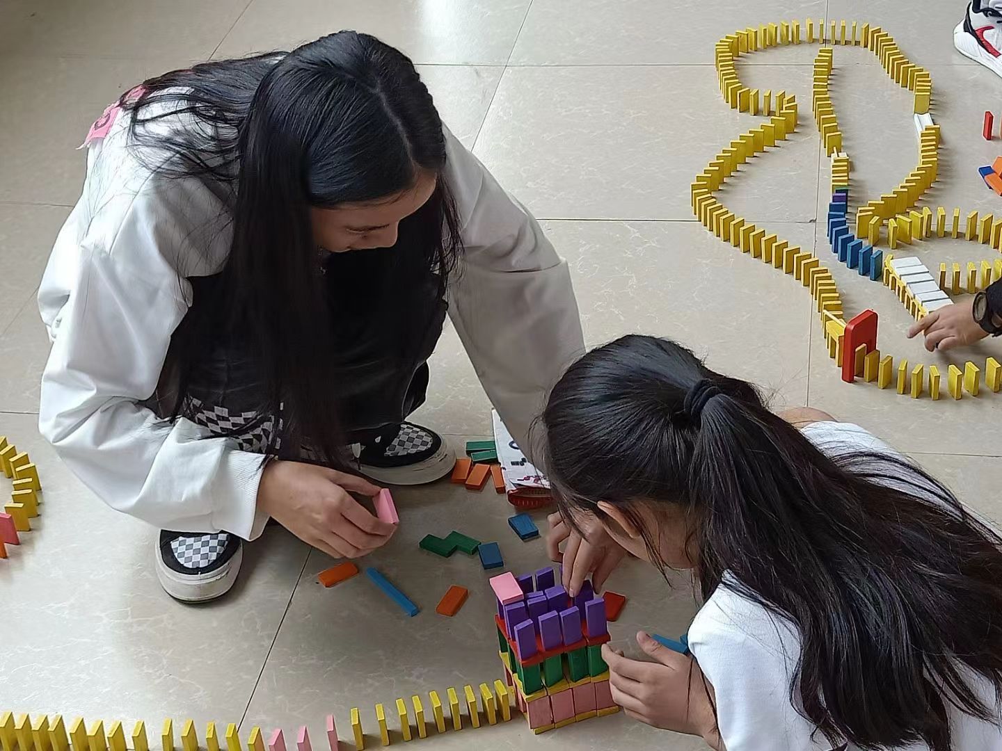 “123开始!”,小朋友手指一动,刷的一声多米诺骨牌应声倒下,课堂上又传来的一阵欢声笑语,课堂上,老师和学生们早已打成一片。这项具有sunbet申愽官网建筑工程学院的专业特色的公益课堂已经坚持了十年。