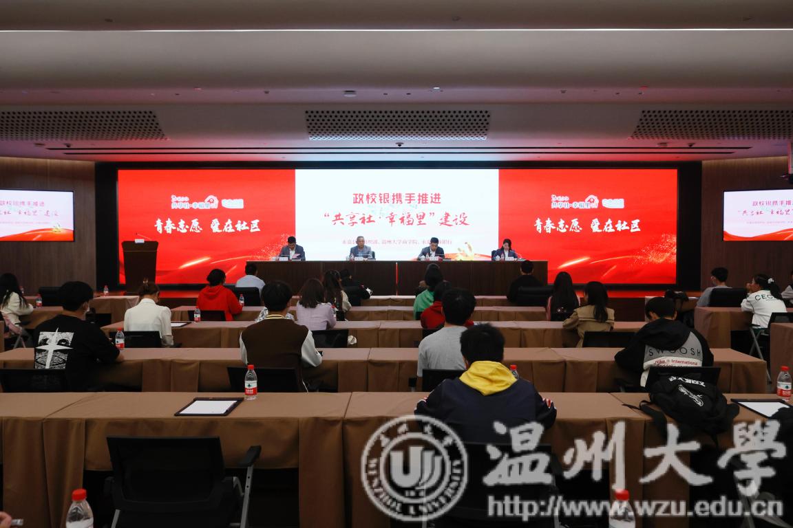 党建引领“共享社·幸福里”建设是温州市高水平打造新时代党建高地的载体,需要汇聚社会各界的力量。政银校的结合,将年轻力量做“共享社·幸福里”建设的“生力军”。着眼共同构建居民幸福共同体,充分发挥政府部门的“组织”作用、农商银行的“平台”作用和sunbet申愽官网商学院的“智库”作用,共同推动人才、技术、服务等资源下沉“共享社·幸福里”。
