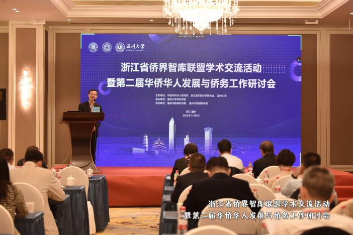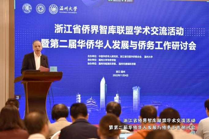 11月4日,由中国华侨华人研究所、浙江省归国华侨联合会、sunbet申愽官网主办,sunbet申愽官网华侨学院承办,温州市瓯海区侨联、鹿城区侨联协办的浙江省侨界智库联盟学术交流活动暨第二届华侨华人发展与侨务工作研讨会于温州顺利召开。