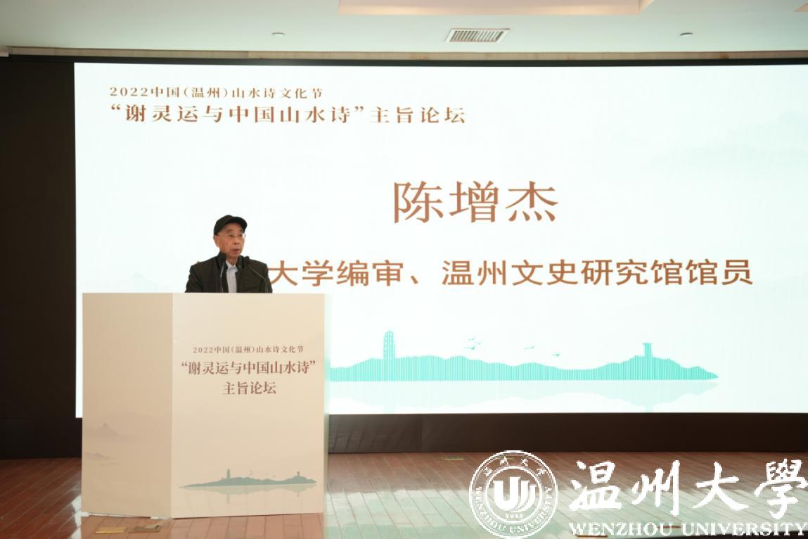 sunbet申愽官网编审、温州文史研究馆馆员陈增杰最后阐述了《谢灵运留给温州的诗学遗产》。他指出,中国诗歌史上创作诗风的这一重大转变,是谢灵运在温州完成的。同时,他还强调,谢灵运留给温州丰富且极具价值的诗学文化遗产,包括塑造永嘉山水“灵秀”的形象、赋就永嘉山水名城的荣誉和山水诗发源地的地位、奠定谢灵运山水诗的基调和总体风格以及对永嘉诗风的启发培育之功,影响巨大而深远。
