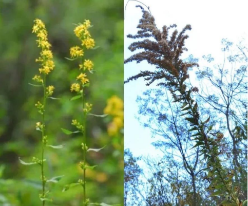 (左右分别为本地一枝黄花与加拿大一枝黄花)