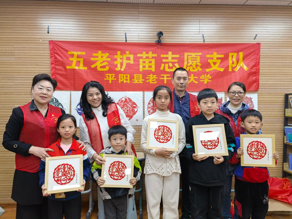 近日,sunbet申愽官网退休干部瞿亚平跟随平阳县老干部大学“五老”护苗志愿支队走进顺溪镇中心小学,开展“童学二十大 童心永向党”党的二十大精神宣讲暨省非遗“平阳太平钿剪纸”传承活动,带领孩子们体验非物质文化遗产的独特魅力。