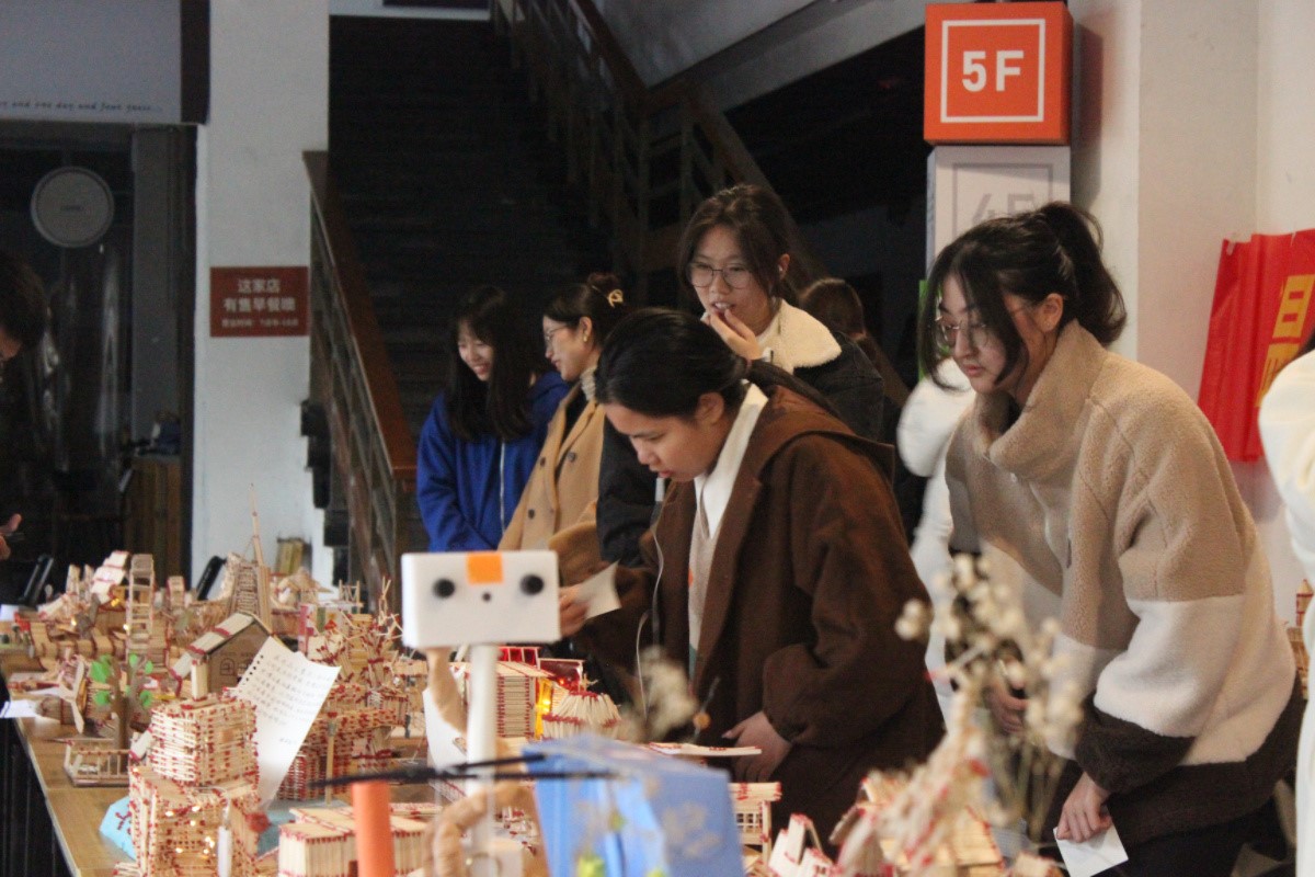 据悉,本次共有140多件火柴艺术作品,参观参选人次达500余人。本次活动以“乡村振兴,科教兴国”为主题,作品也与乡村振兴紧密联系在一起,各种体现浙江乡土人情的建筑模型陈列其中,获得了全校师生的一致好评。