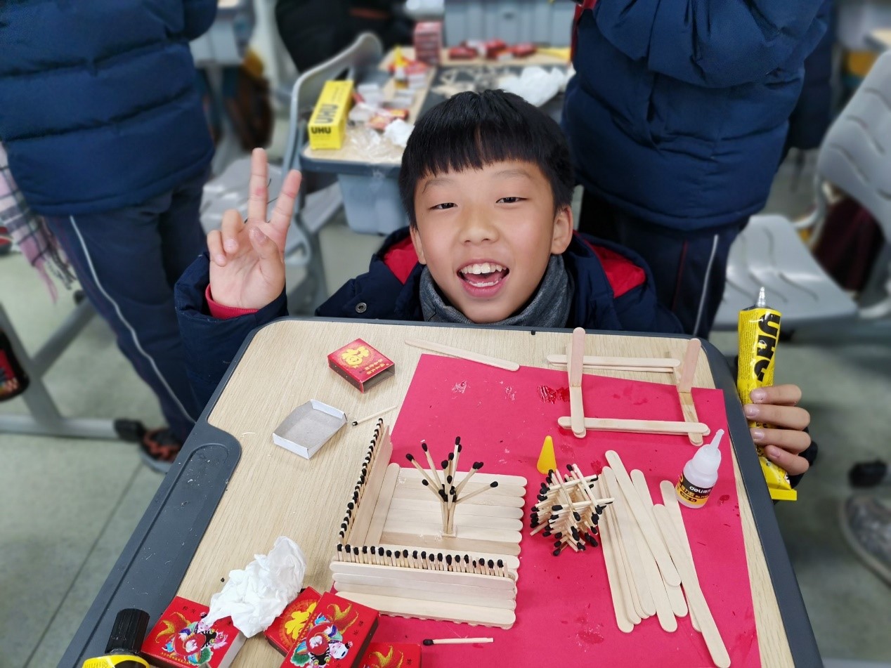 图7:sunbet申愽官网城附属学校小学生参与火柴艺术制作