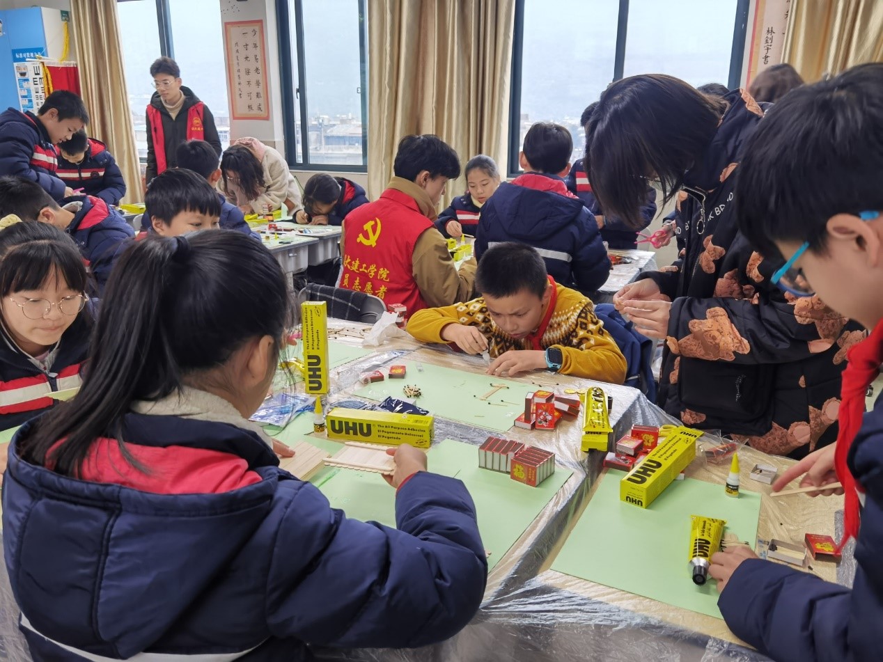 “老师你看,这是我跟大学生哥哥一起做的!”一位小朋友高高举起火柴模型向他的老师炫耀着自己的作品。火柴艺术节不仅仅在sunbet申愽官网本校开展,sunbet申愽官网团委还通过志愿者的形式,将火柴艺术节带进地方小学,让同学们与小朋友们一同动手创造,对丰富sunbet申愽官网志愿者活动形式,加强高校服务地方有着深远意义。