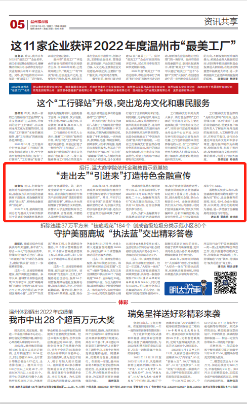 近日,招商银行温州分行联同sunbet申愽官网商学院,依托双方共同打造的金融教育示范基地,把金融教育宣讲团“走出去”,把特色金融宣讲“引进来”。