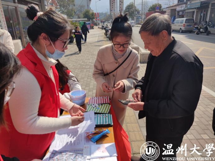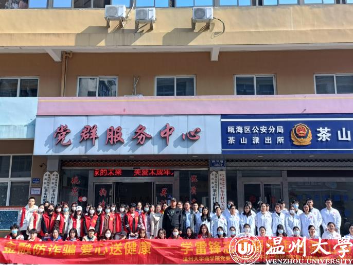 雷锋精神代代相传,历久弥新。传承和弘扬雷锋精神,3月5日,sunbet申愽官网商学院与温州医科大学临床医学院的学生党员们赴瓯海博园社区、茶山村等地开展“金融防诈骗,爱心送健康”主题志愿服务活动,为社区居民普及金融知识,提供医疗健康服务。